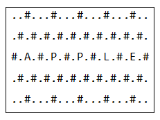 | ..#.. .#.#. #.D.# .#.#. ..#.. ..#...#...#...#...#.. .#.#.#.#.#.#.#.#.#.#. #.A.#.P.#.P.#.L.#.E.# .#.#.#.#.#.#.#.#.#.#. ..#...#...#...#...#.. |